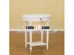 This white painted furniture - 1 drawer oval side table with shelfis made of kiln dried solid mahogany wood hand madeBuy our high quality white painted furniture - 1 drawer ovalside table with shelf made of kiln dried solid mahogany wood handmade and machine made from Indonesia at factory direct price.